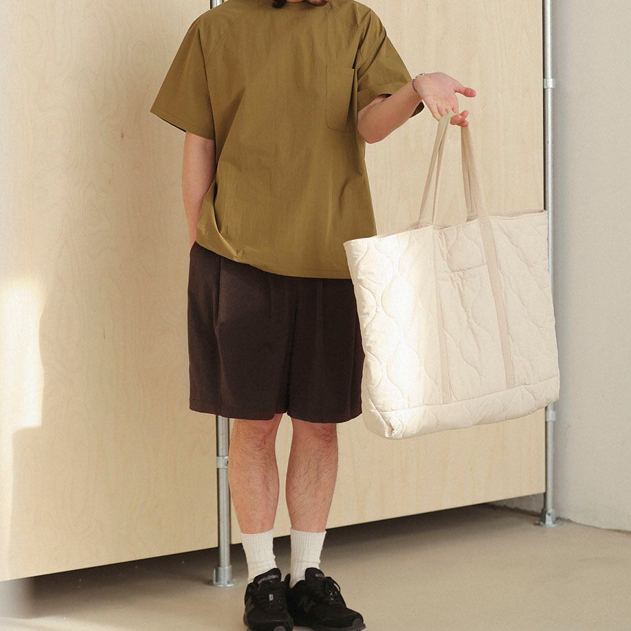 タック入りのデザインでラフすぎず、上品な印象に。