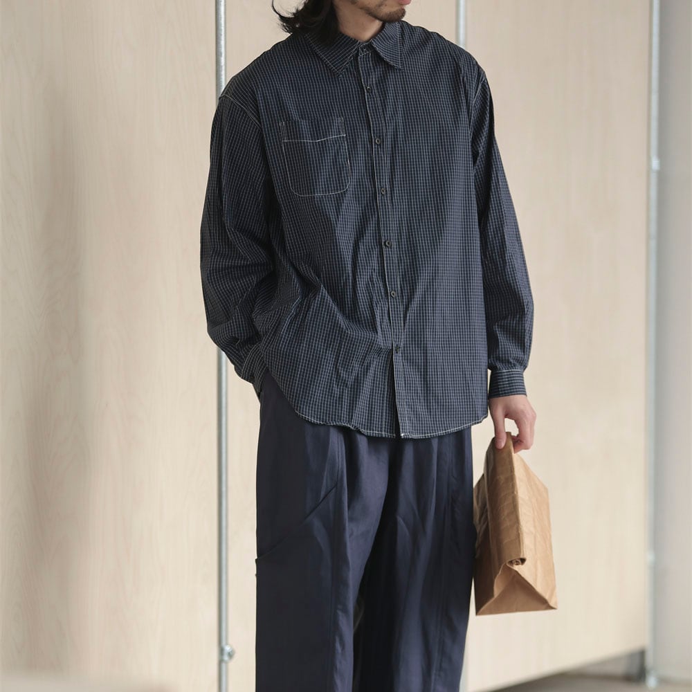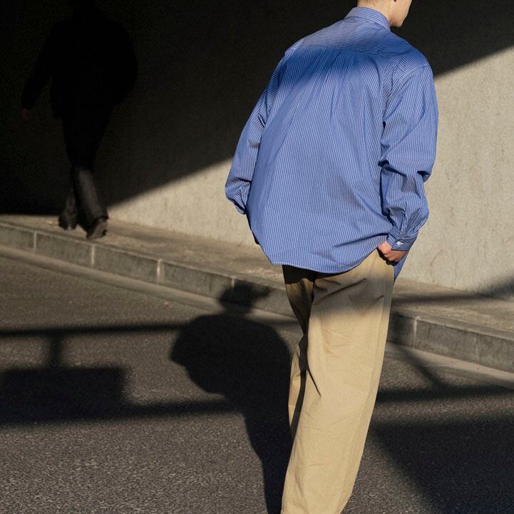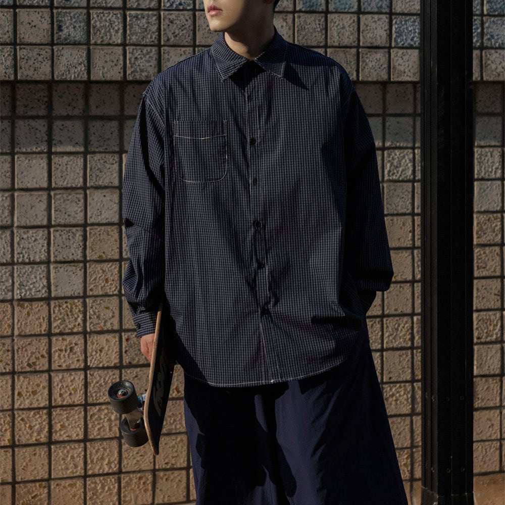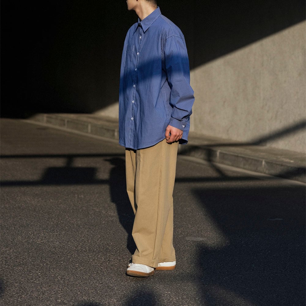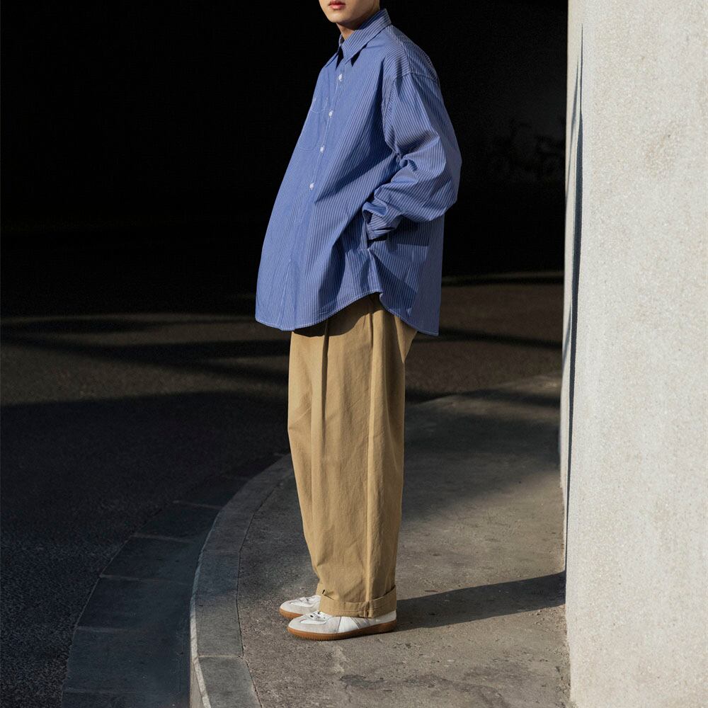 ルーズなシルエットと洗練されたストライプが魅力のメンズシャツです。